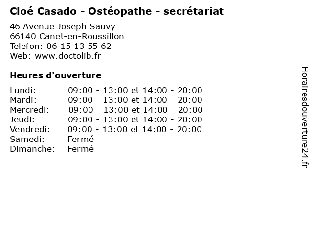 | Vendredi | 09:00-13:00 et 14:00-20:00 |