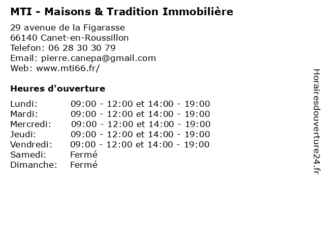 | Mardi | 09:00-12:00 et 14:00-19:00 |