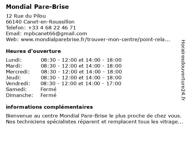 | Lundi | 08:30-12:00 et 14:00-18:00 |