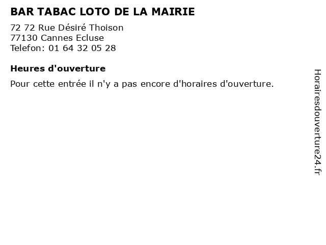 | Appeler BAR TABAC LOTO DE LA MAIRIE | |