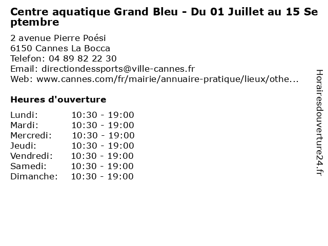 Termes de recherche pour Centre aquatique Grand Bleu - Du 01 Juillet au 15 Septembre:du, grand, au, 01, centre, bleu, piscine, aqua, 15, sept, juillet, septembre, aquatique |