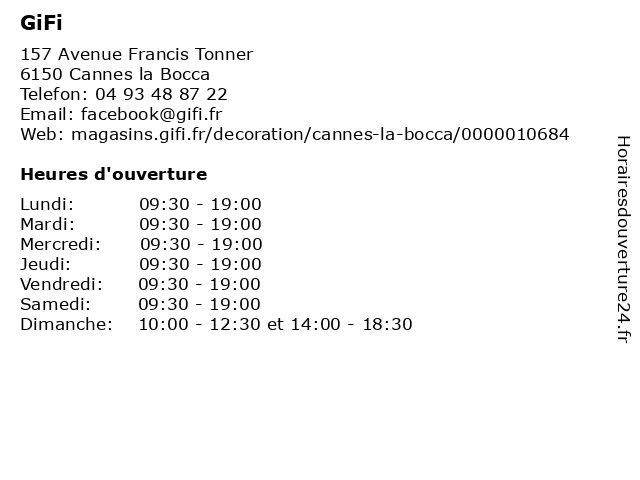 | Dimanche | 10:00-12:30 et 14:00-18:30 |