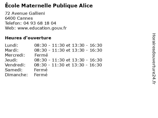 | Mardi | 08:30-11:30 et 13:30-16:30 |