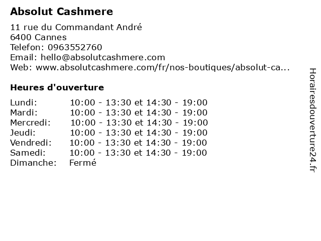 | Mardi | 10:00-13:30 et 14:30-19:00 |