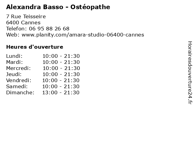 | Lundi | 10:00-21:30 |