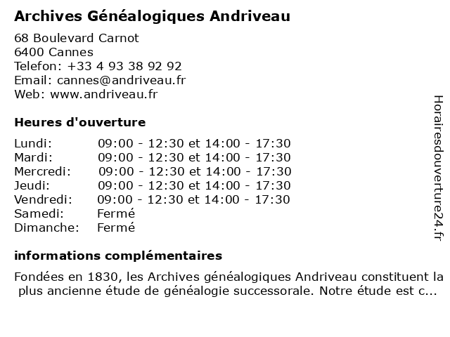 | Lundi | 09:00-12:30 et 14:00-17:30 |