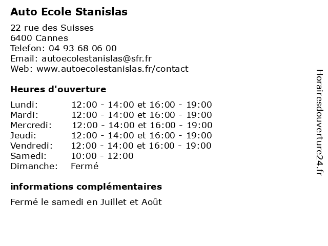 | Mercredi | 12:00-14:00 et 16:00-19:00 |