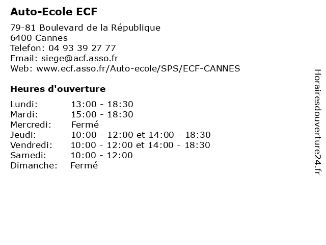 | Vendredi | 10:00-12:00 et 14:00-18:30 |