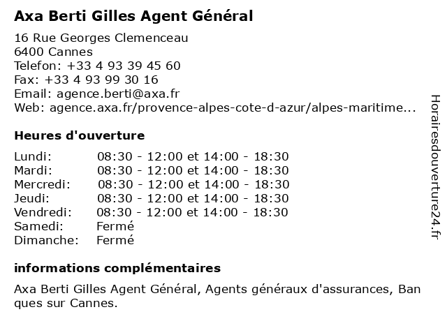 1 AXA Assurance et Banque Eirl Poinet Gaelle (Distance: 0,40 km) 15 Rue Louis Blanc, 06400 Cannes assurance, assurance appartement, assurance auto, assurance entreprise, assurance epargne, assurance habitation, assurance maison, assurance professionnelle, assurance santé, assurance voiture, axa, banque, eirl, et, gaelle, poinet 2 Dr Gilles Violet - Chirurgien-dentiste - secrétariat (Distance: 0,44 km) 13 Avenue Laugier, 06400 Cannes chirurgien, chirurgien-dentiste, dentiste, dr, gilles, médecins, médicaments, santé, secrétariat, spécialiste, violet 3 AXA Assurance et Banque Karen Lanniee (Distance: 0,59 km) 6 Avenue de Grasse, 06400 Cannes assurance, assurance appartement, assurance auto, assurance entreprise, assurance epargne, assurance habitation, assurance maison, assurance professionnelle, assurance santé, assurance voiture, axa, banque, et, karen, lanniee 4 Agent Provocateur (Distance: 0,93 km) 19 Rue du Commandant André, 06400 Cannes agent, bridal accessories, lingerie, provocateur, swim wear, underwear 5 Yves St Gilles Coiffure (Distance: 1,20 km) 5 Rue du Médecin Lieutenant Bertrand Lépine, 06400 Cannes beauté, coiffure, coiffures, coloristes, gilles, st, yves 6 Axa Assurance (Distance: 1,38 km) 42 Boulevard De Lorraine, 06400 Cannes assurance, assurance prêt, assurances, axa, services |