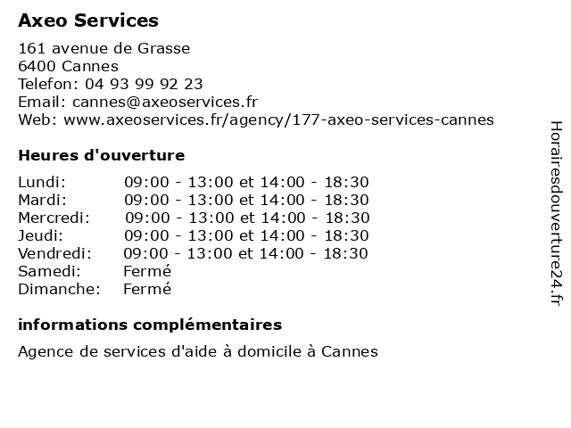| Lundi | 09:00-13:00 et 14:00-18:30 |