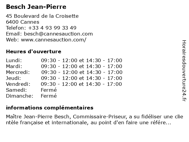 | Lundi | 09:30-12:00 et 14:30-17:00 |