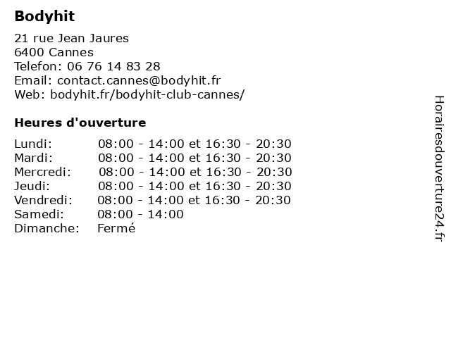 | Lundi | 08:00-14:00 et 16:30-20:30 |