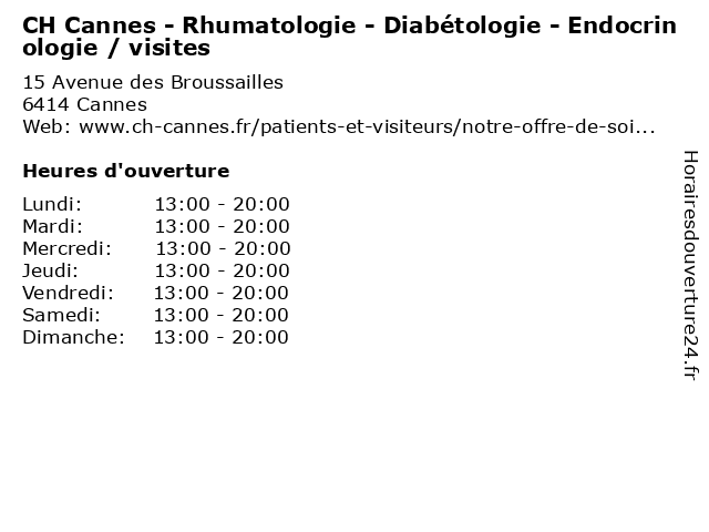 | Samedi | 13:00-20:00 |