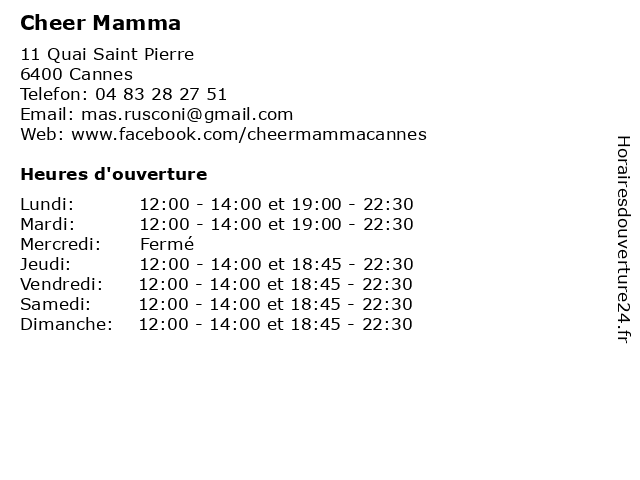 | Samedi | 12:00-14:00 et 18:45-22:30 |