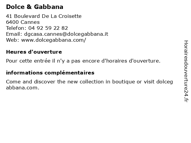| Appeler Dolce & Gabbana | |