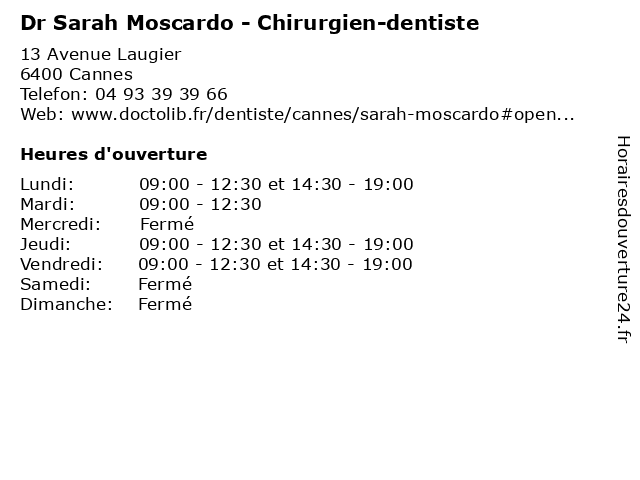 | Lundi | 09:00-12:30 et 14:30-19:00 |