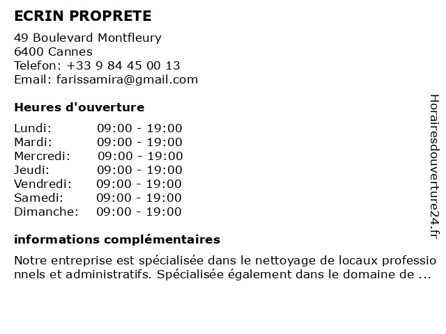 | Lundi | 09:00-19:00 |