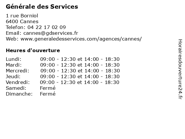 | Lundi | 09:00-12:30 et 14:00-18:30 |