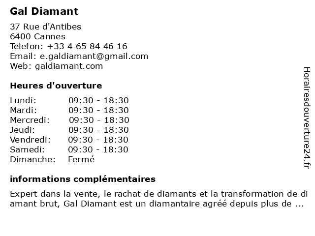 1 Dr Nathalie Le Gal Tancogne - Médecin généraliste (Distance: 8,52 km) 5 Place du Général de Gaulle, 06370 Mouans-Sartoux docteur, dr, gal, generaliste, généraliste, le, medecin, médecin, nathalie, soins, tancogne 2 Marc Orian (Distance: 7,23 km) 791 Avenue de Fréjus Paul Ricard, 06210 Mandelieu la Napoule bijouteries, bracelets, diamant, marc, montres, orian, réparation 3 Maître Laurence Diamant - Avocate (Distance: 25,96 km) 17 Rue Alexandre Mari, 06300 Nice avocate, avocats, civils, diamant, droits, juridiques, laurence, maître 4 Brasserie Gal (Distance: 27,17 km) 21 Rue Auguste Gal, 06300 Nice bar, brasserie, café, gal, restaurants 6 Les Cafes Du Marche (Distance: 40,88 km) 16 Rue Courbet, 83120 Ste Maxime cafes, cyril, gal, henri, hugues, marche, restaurants |