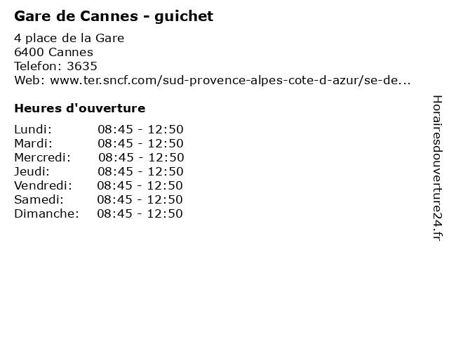 Termes de recherche pour Gare de Cannes - guichet:en, de, cannes, gare, sncf, transports, train, tgv, guichet, ter, commun, ferroviaire |