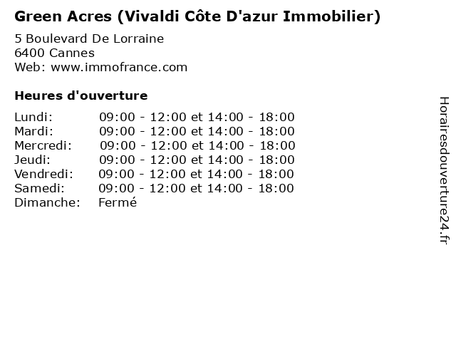 1 Vivaldi Côte d'Azur Immobilier (Distance: 0,03 km) 5-9 boulevard de Lorraine, 06400 Cannes agence, côte, d'azur, gestion, immobilier, location, transaction, vivaldi 2 Green Acres (Azur Estate Agency) (Distance: 0,19 km) 124 Rue D'antibes, 06400 Cannes acres, agency, apartment rentals, azur, estate, green, home sales, real estate 3 Green Acres - Solange Barenfeld (Distance: 0,20 km) 10 av Branly, 06400 Cannes acres, agency, agent, apartment, barenfeld, green, home, real estate, solange 4 Green Acres (Agence Cannes Soleil) (Distance: 0,34 km) 4 R La Fontaine, 06400 Cannes acres, agence, apartment rentals, cannes, green, home sales, real estate, soleil 5 Green Acres - Xl Office Immobilier (Distance: 0,35 km) 3 Rue Tony Allard, 06400 Cannes acres, agency, agent, apartment, green, home, immobilier, office, real estate, xl 6 Green Acres - Services Immobiliers (Distance: 0,55 km) 6 r Macé, 06400 Cannes acres, agency, agent, apartment, green, home, immobiliers, real estate, services |