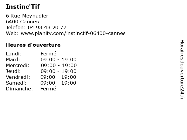 | Lundi | Fermé |