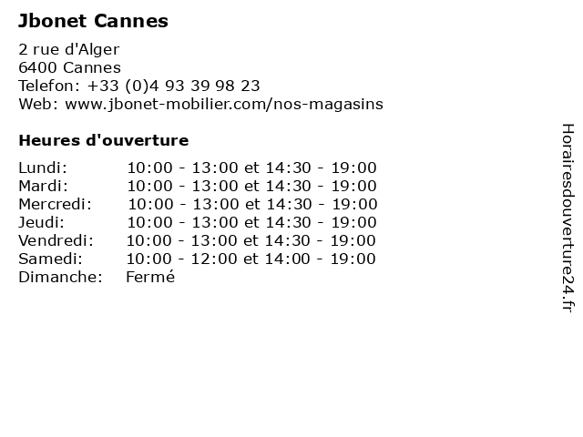 | Jeudi | 10:00-13:00 et 14:30-19:00 |