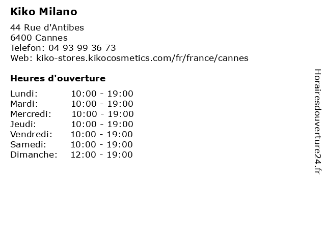 1 Kiko Milano (Distance: 15,15 km) 119 Avenue Des Alpes, 06800 Cagnes sur Mer beauté, cosmétique, kiko, maquillage, milano, soins 2 Kiko Milano (Distance: 18,51 km) - Avenue Eugène Donadeï, 06700 Saint-Laurent-du-Var beauté, cosmétique, kiko, maquillage, milano, soins 3 Boggi Milano (Distance: 0,43 km) 102 Rue d'Antibes, 06400 Cannes boggi, boutique, chemises, costumes, habillement, homme, milano, mode, resort 4 Caffè Milano (Distance: 7,77 km) 16 Avenue Docteur Dautheville, 06160 Juan Les Pins bar, bistro, bistrot, brasserie, caffè, café, milano, pub, restaurant, restauration, resto 5 Le Milano (Distance: 9,20 km) 2 Rue De La Tourraque, 06600 Antibes bar, bistro, bistrot, brasserie, café, le, milano, pub, restaurant, restauration, resto 6 Famille Mary (Distance: 0,07 km) 10 Rue Hoche, 06400 Cannes ampoules gelée royale, apiculteur local, bienfait miel, complément alimentaire, cosmétique bio, cosmétique miel, cure gelée royale, famille, gateau miel, gelée royale, mary, miel, miel acacia, miel anjou, miel bio, miel français, miel local, miel thym, pollen, propolis, santé naturelle, tonus  |
