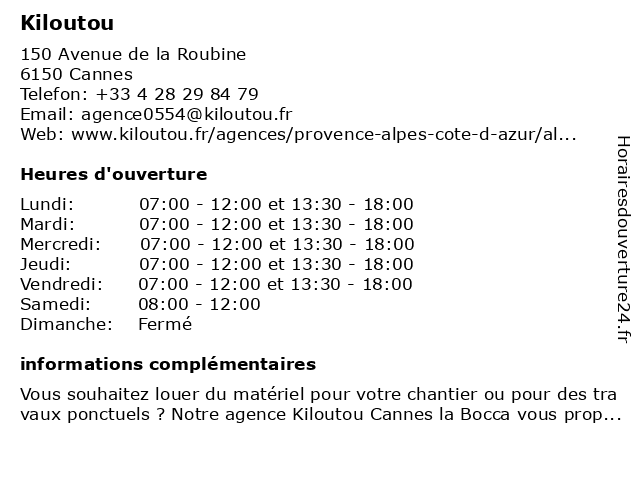Lundi | 07:00-12:00 et 13:30-18:00 |