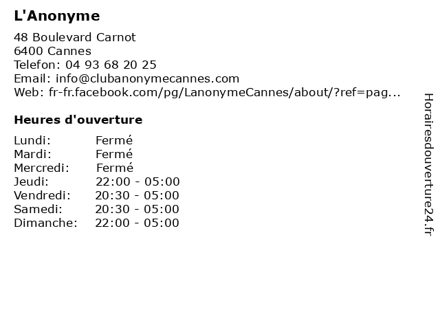 | Dimanche | 22:00-05:00 |
