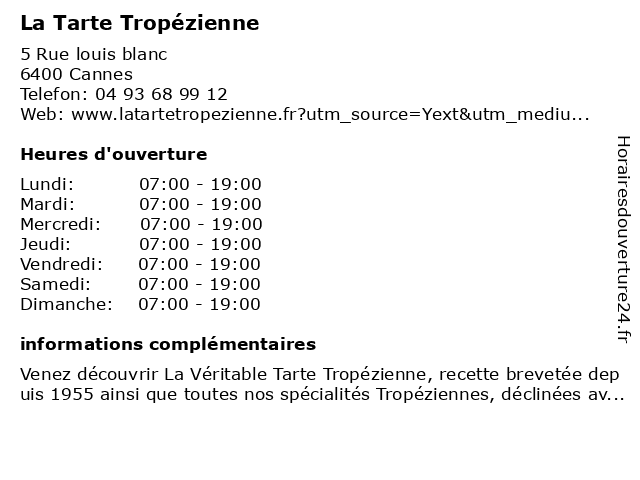 | Samedi | 07:00-19:00 |