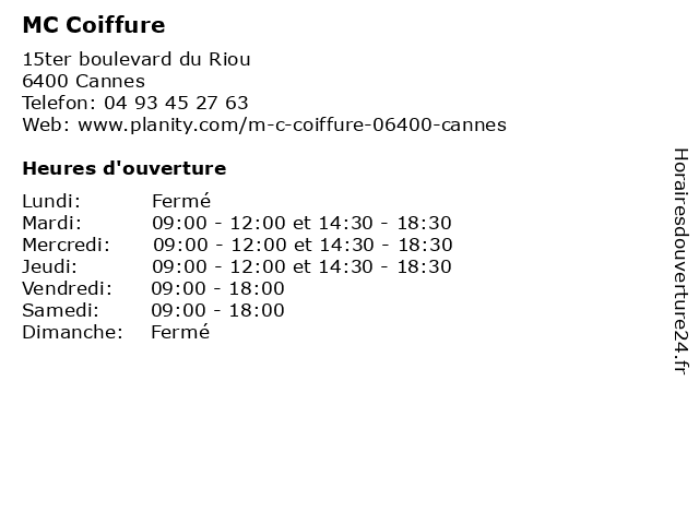 | Mardi | 09:00-12:00 et 14:30-18:30 |
