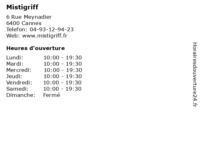 | Lundi | 10:00-19:30 |