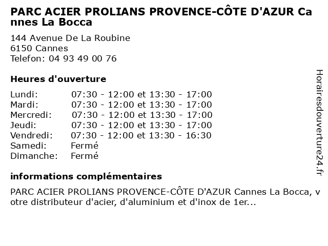 Termes de recherche pour PARC ACIER PROLIANS PROVENCE-CÔTE D'AZUR Cannes La Bocca:provence, la, cannes, bocca, cote, parc, d'azur, prolians, acier |