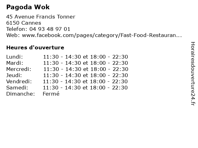| Mercredi | 11:30-14:30 et 18:00-22:30 |