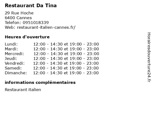 | Dimanche | 12:00-14:30 et 19:00-23:00 |