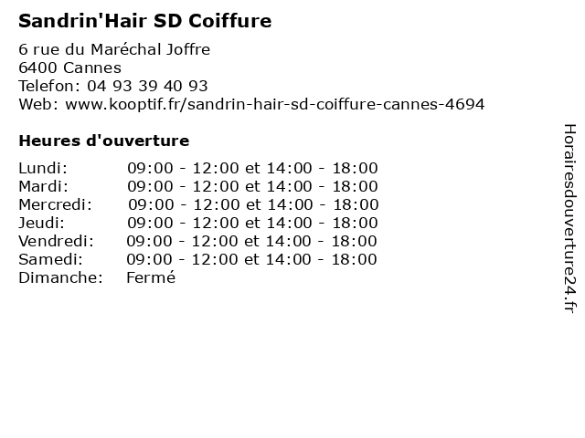 | Lundi | 09:00-12:00 et 14:00-18:00 |