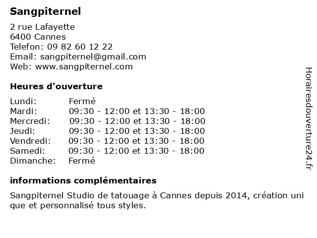 | Samedi | 09:30-12:00 et 13:30-18:00 |