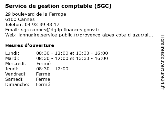 1 Service de gestion comptable (SGC) (Distance: 8,25 km) 2203 chemin de Saint-Claude, 06160 Antibes administration, antibes, comptable, de, finances, gestion, impots, municipale, public, publiques, service, sgc, tresor, tresorerie, trésorerie 2 Service de gestion comptable (SGC) (Distance: 9,90 km) 119 route de la Paoute, 06130 Grasse administration, comptable, de, finances, gestion, grasse, impots, municipale, public, publiques, service, sgc, tresor, tresorerie, trésorerie 3 Service de gestion comptable (SGC) (Distance: 16,14 km) - Rue de Paris, 06800 Cagnes-sur-Mer administration, comptable, de, du, finances, gestion, impots, laurent, public, publique, saint, service, sgc, tresor, tresorerie, trésorerie, var 4 Green Acres - Odim Gestion (Distance: 0,17 km) 66 r Antibes, 06400 Cannes acres, agency, agent, apartment, gestion, green, home, odim, real estate 5 Green Acres - Societe Alpha Gestion (Distance: 0,33 km) 1 Rue Montaigne, 06400 Cannes acres, agency, agent, alpha, apartment, gestion, green, home, real estate, societe 6 AUDIT BILAN CONSEILS GESTION ABCG (Distance: 1,10 km) 3 Rue de Bône, 06400 Cannes abcg, audit, bilan, conseils, gestion |