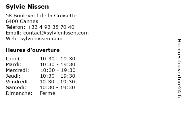 2 Home Color - Sylvie Remy (Distance: 1,41 km) 163 Boulevard de la Republique, 06400 Cannes beauté, coiffure, coiffures, color, coloristes, home, remy, sylvie 3 Maître Sylvie Charlotte Schmitt - Avocate (Distance: 1,44 km) 25 avenue du Commandant Bret, 06400 Cannes avocate, avocats, charlotte, civils, droits, juridiques, maître, schmitt, sylvie 4 Dr Sylvie Nicolau Langlade - Endocrinologue (Distance: 1,76 km) 33 Boulevard d'Oxford, 06400 Cannes dr, endi, endocrinologue, langlade, medecin, nicolau, sante, sylvie 5 Sylvie Rihal - Hypnothérapeute (Distance: 2,14 km) 84 Rue de Cannes, 06110 Le Cannet hypnose, hypnotherapeute, hypnothérapeute, rihal, sante, soins, sylvie 6 Dr Sylvie Chanton - Pharmacien hospitalier (Distance: 2,37 km) 15 Avenue des Broussailles, 06414 Cannes cachet, cannes, centre, chanton, de, dr, hospitalier, medicament, pharmacie, pharmacien, sylvie |