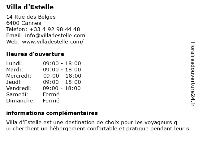 | Samedi | Fermé |