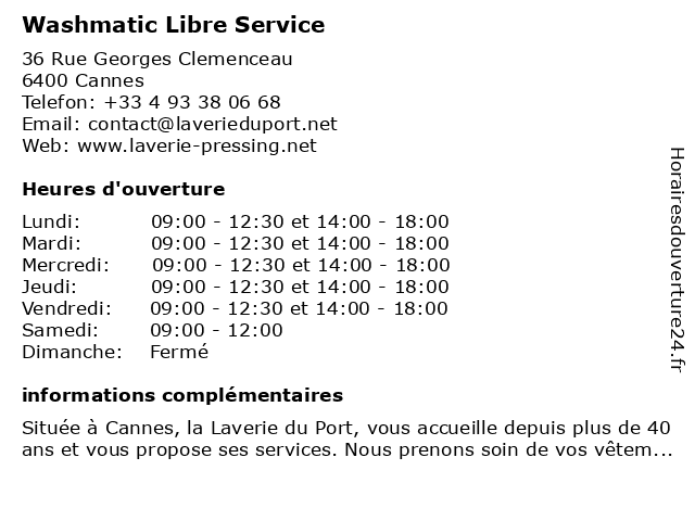 | Lundi | 09:00-12:30 et 14:00-18:00 |