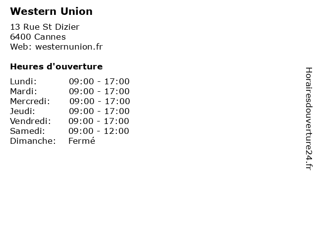 1 Western Union (Distance: 0,68 km) 161 Avenue De Grasse, 06400 Cannes centre de remmittance, l'argent, transfert d'argent, union, western 2 Western Union (Distance: 0,88 km) 22 Rue Bivouac Napoleon, 06400 Cannes centre de remmittance, l'argent, transfert d'argent, union, western 3 Western Union (Distance: 1,05 km) 19 Rue Hoche, 06400 Cannes centre de remmittance, l'argent, transfert d'argent, union, western 4 Western Union (Distance: 1,30 km) 34 Rue Mimont, 06400 Cannes centre de remmittance, l'argent, transfert d'argent, union, western 5 Western Union (Distance: 1,32 km) 38 Rue De Mimont, 06400 Cannes centre de remmittance, l'argent, transfert d'argent, union, western 6 Western Union (Distance: 1,53 km) n/a Ste Anne, 06251 Mougins centre de remmittance, l'argent, transfert d'argent, union, western |