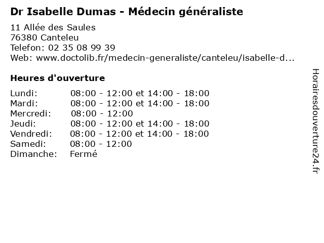 | Lundi | 08:00-12:00 et 14:00-18:00 |