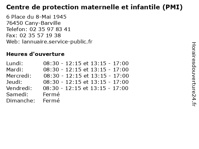 | 1 Centre de Protection Maternelle et Infantile (PMI) (Distance: 9,75 km) 3 rue Jeanne-Armand-Colin, 76460 Saint-Valery-en-Caux administration, assoc, associations, aux, centre, d'information, de, des, dédié, et, greffe, infantile, information, local, locale, maternelle, mission, personnes, pmi, protection 2 Centre de protection maternelle et infantile (PMI) (Distance: 10,47 km) - rue Guy-de-Maupassant, 76540 Thiergeville administration, assoc, associations, aux, centre, d'information, de, des, dédié, et, greffe, infantile, information, local, locale, maternelle, mission, personnes, pmi, protection 3 Centre de Protection Maternelle et Infantile (PMI) (Distance: 12,97 km) 14 Rue des Prés, 76560 Doudeville administration, assoc, associations, aux, centre, d'information, de, des, dédié, et, greffe, infantile, information, local, locale, maternelle, mission, personnes, pmi, protection 4 Centre de protection maternelle et infantile (PMI) (Distance: 14,29 km) 40 rue Alfred-Labarbe, 76740 Fontaine-le-Dun administration, assoc, associations, aux, centre, d'information, de, des, dédié, et, greffe, infantile, information, local, locale, maternelle, mission, personnes, pmi, protection 5 Centre de protection maternelle et infantile (PMI) (Distance: 15,44 km) 40 Rue Alfred Labarbe, 76740 Fontaine le Dun centre, conseils, de, et, infantile, maternelle, parents, pmi, protection, prévention, puéricultrice, pédiatre 6 Centre de protection maternelle et infantile (PMI) (Distance: 15,52 km) 495 Rue de Normandie, 76640 Fauville en Caux administration, assoc, associations, aux, centre, d'information, de, des, dédié, et, greffe, infantile, information, local, locale, maternelle, mission, personnes, pmi, protection |