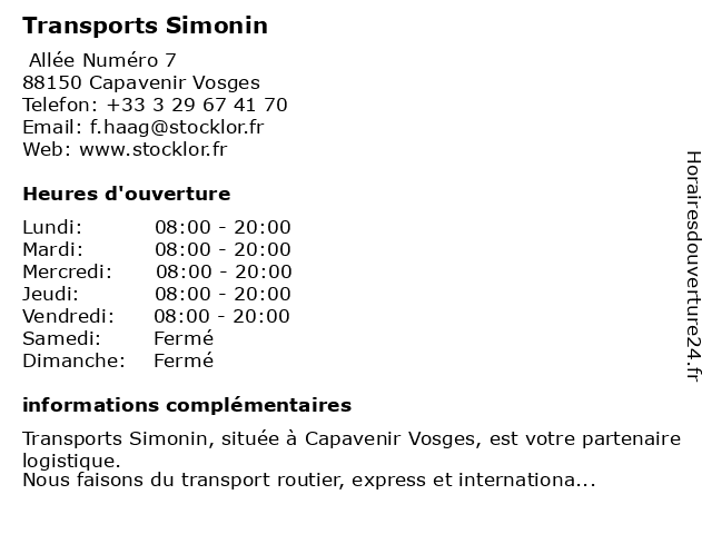 2 Gondrand Frères Transports (Distance: 8,13 km) 4 Rue du Général Leclerc, 88190 Golbey frères, gondrand, transports 3 Transports Heilmann (Distance: 8,19 km) 447 Rue de la Crx de Romont, 88390 Darnieulles heilmann, transports 4 Aurélie Simonin - Ostéopathe (Distance: 10,10 km) 12 Rue de la Clé d'Or, 88000 Épinal aurélie, ostéo, ostéopathe, ostéopathes, simonin, soins 5 Auto-École Simonin (Distance: 37,30 km) 53 rue d'Alsace, 54300 Lunéville auto, auto école, code, cours, formation, permis, simonin, école 6 Auto-École Simonin (Distance: 47,39 km) 19 rue Carnot, 54170 Colombey-les-Belles auto, auto école, code, cours, formation, permis, simonin, école |