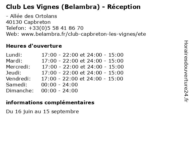 | Vendredi | 17:00-22:00 et 24:00-15:00 |