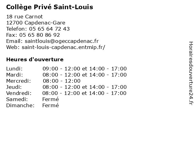 1 Collège Privé Saint-Louis - Secrétariat (Distance: 0,00 km) 18 rue Carnot, 12700 Capdenac-Gare cio, collège, ecole, enseignement, louis, lycée, maternelle, nationale, orientation, primaire, privé, privée, public, publique, saint, secrétariat, école, éducation, élémentaire 2 Collège Public Voltaire (Distance: 0,23 km) 10 rue Paul Bert, 12700 Capdenac-Gare cio, collège, ecole, enseignement, lycée, maternelle, nationale, orientation, primaire, privé, privée, public, publique, voltaire, école, éducation, élémentaire 3 École Elémentaire Publique Louis Barrié (Distance: 6,07 km) 9 chemin des Miattes, 46100 Figeac barrié, cours, education, elémentaire, louis, publique, services, école, élémentaire 4 Collège Privé Sainte-Foy (Distance: 13,83 km) 17 avenue F Cabrol, 12300 Decazeville cio, collège, ecole, enseignement, foy, lycée, marie, maternelle, nationale, orientation, primaire, privé, privée, public, publique, sainte, école, éducation, élémentaire 5 Vidal Claude Michel Louis (Distance: 13,89 km) 85 Rue Cayrade, 12300 Decazeville claude, louis, michel, restaurants, vidal 6 Collège Public Paul Ramadier (Distance: 14,01 km) 1 rue Prosper Alfaric, 12300 Decazeville cio, collège, ecole, enseignement, lycée, marie, maternelle, nationale, orientation, paul, primaire, privé, privée, public, publique, ramadier, sainte, école, éducation, élémentaire |
