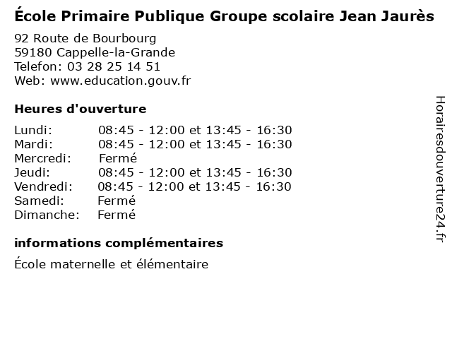 | Lundi | 08:45-12:00 et 13:45-16:30 |