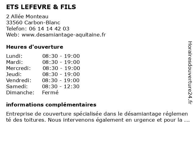 Termes de recherche pour ETS LEFEVRE & FILS:ets, fils, lefevre, entreprise de démolition, entrepreneur en toitures |